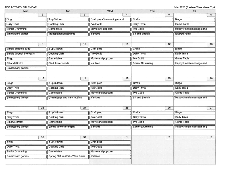 Adult day care is unlike assisted living or nursing facilities. It is flexible, affordable and helps your loved one remain as independent as possible. During weekdays, clients may spend the whole day or part of the day at our centers and return home – at a cost that is significantly less than other care options. Transportation, nursing and therapy are also available.