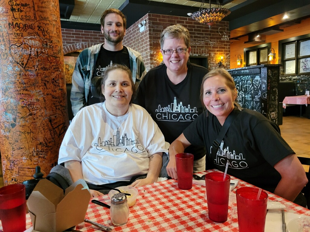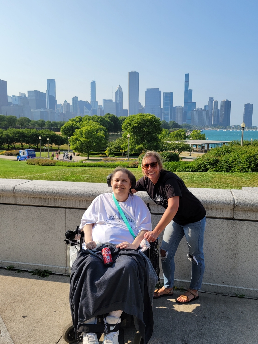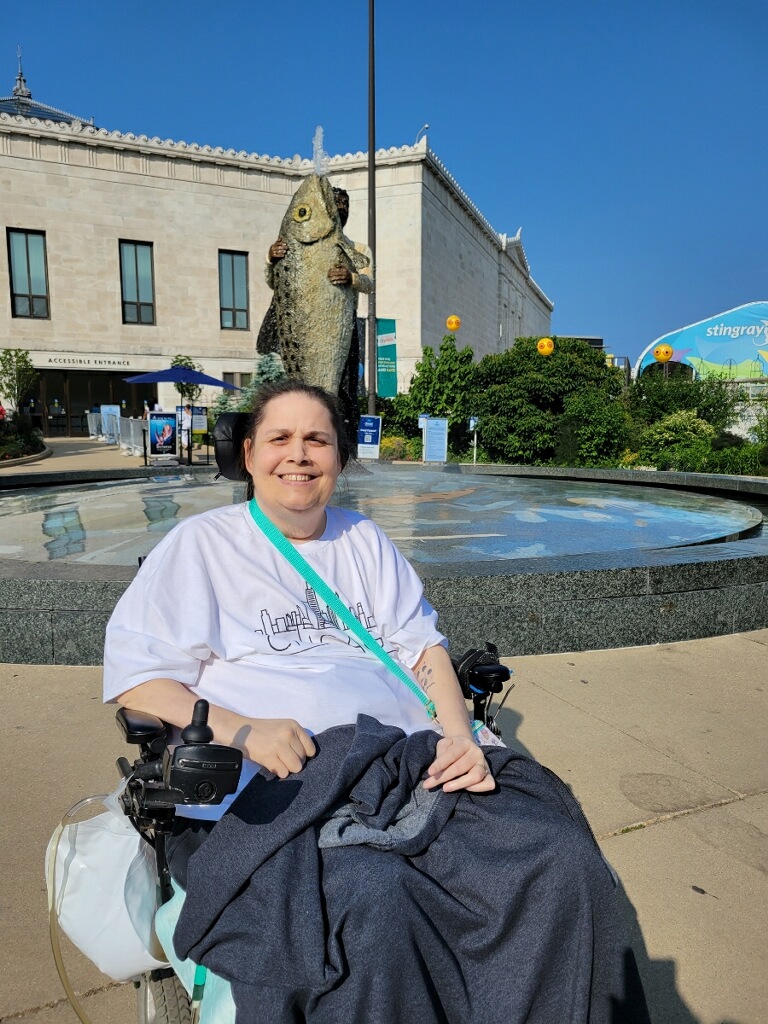 Travel companions were required to help with her needs during the trip and a means of transportation had to be arranged. Kelly Cohoon, a friend and caregiver, Abby Donovan, RN, and Shawn Osborn, LPN, from CHP, were assembled. Mobility Works of Perrysburg contributed a van for the trip and Shedd Aquarium donated three tickets.