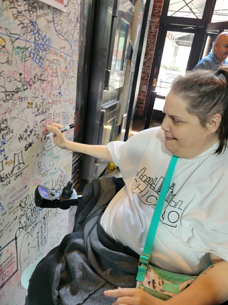 A trip to Chicago isn’t complete without indulging in some famous Chicago-style cuisine. Feehan wanted authentic Chicago pizza from the iconic Gino’s East. The management and staff at Gino’s prepared a delicious pie for the group to enjoy and Feehan signed the wall.